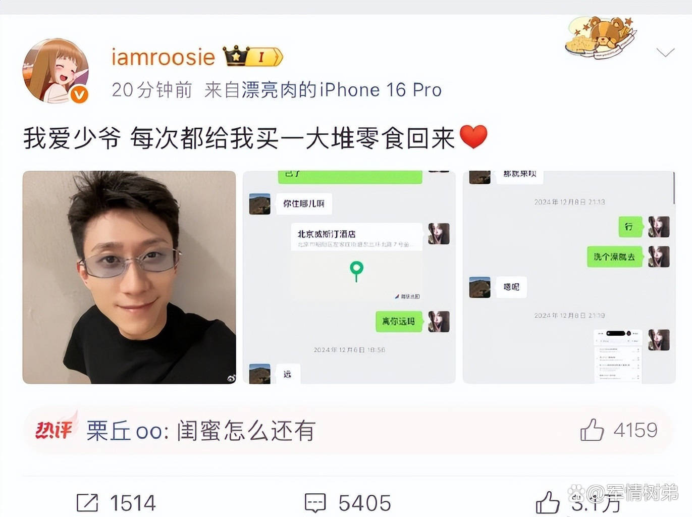 司晓迪的爆料堪称年度狗血大戏。她先是甩出鹿晗的打码床照,声称“30岁睡完顶流人生无憾”,紧接着放出同款发型、耳饰、纹身的对比图,甚至连司机和桌子花纹都成了“证据”。正当全网以为顶流恋情曝光时,她又转头澄清“只是朋友醉酒玩闹”,转头却爆料关晓彤与王安宇约会,被女方工作室火速打脸。这种前后矛盾的操作,让人看得眼花缭乱。更荒诞的是对檀健次的指控,她晒出亲昵聊天记录,称对方是“螺蛳粉王子”,还拿出“同款衣服”作为铁证,结果被男方团队硬刚“凭空捏造”,直接放出律师函警告。